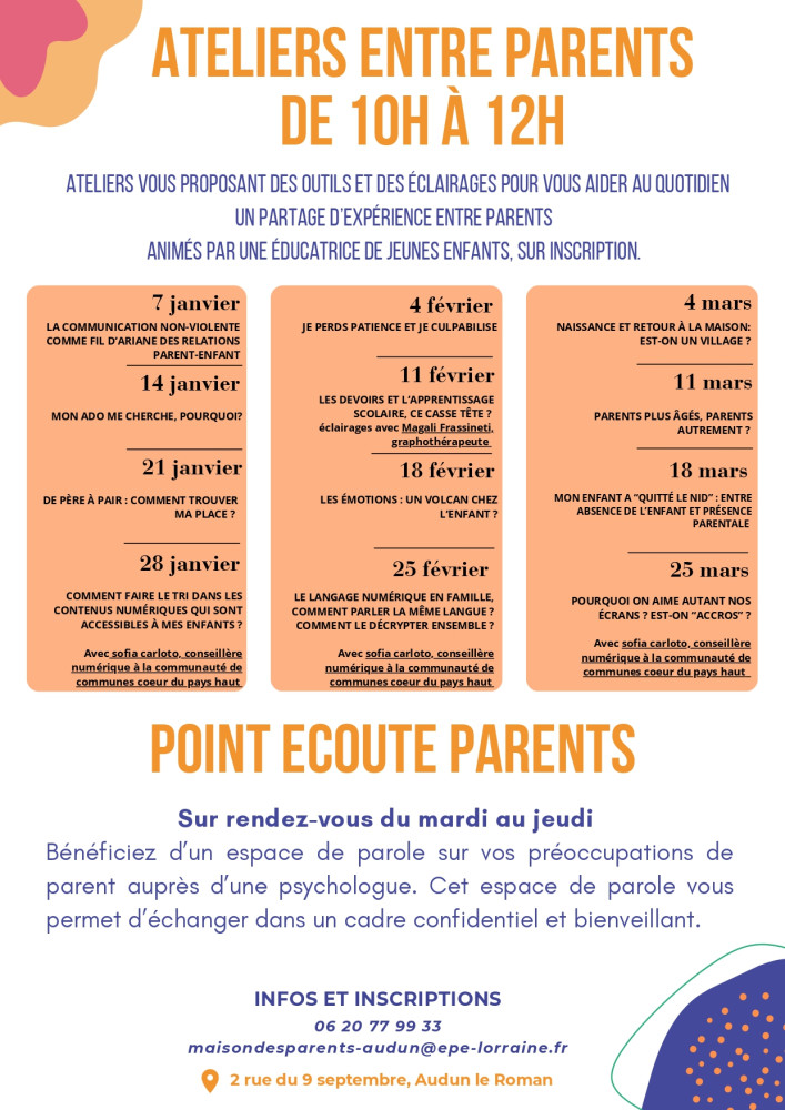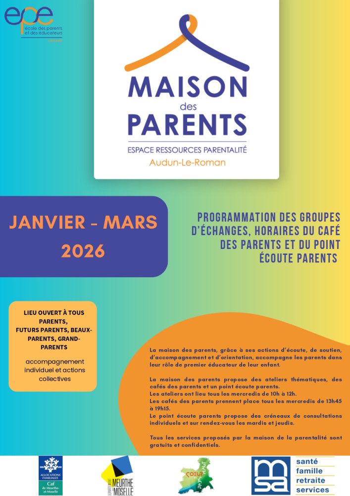 Relais d'info : Maison de la Parentalité à Audun-le-Roman et programme de janvier à mars 2026