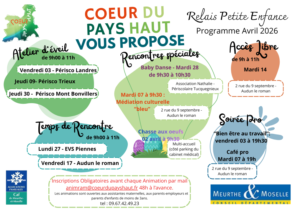Consulter le programme d'activités concocté par le Relais Petite Enfance pour le mois d'avril :